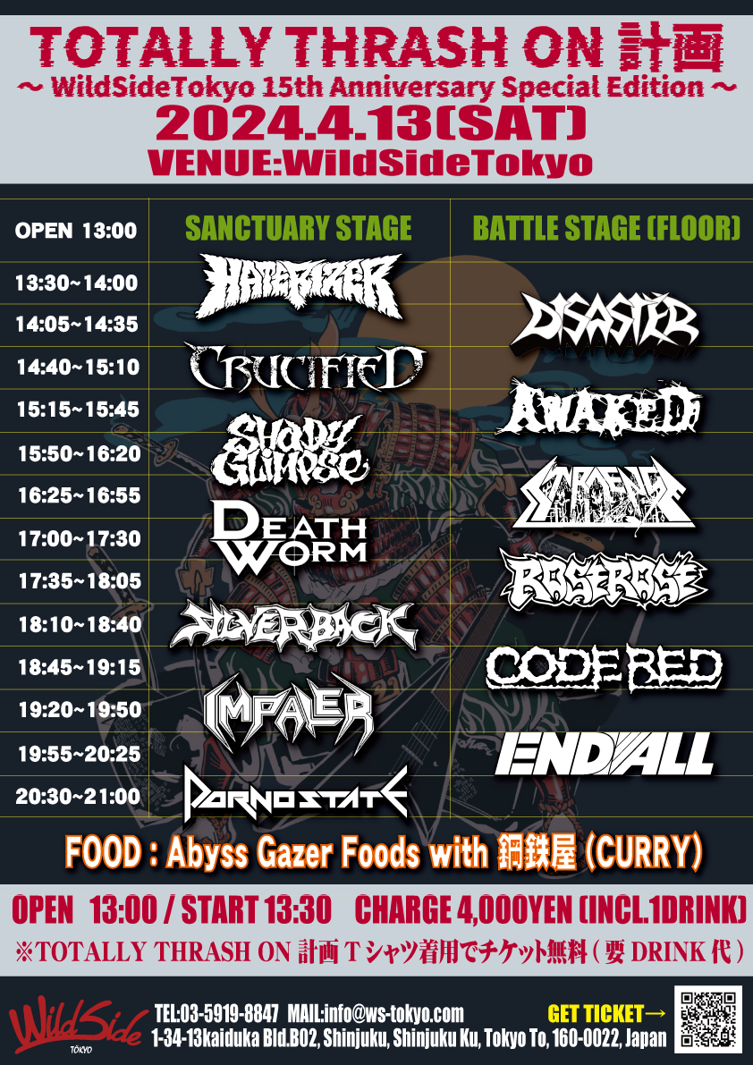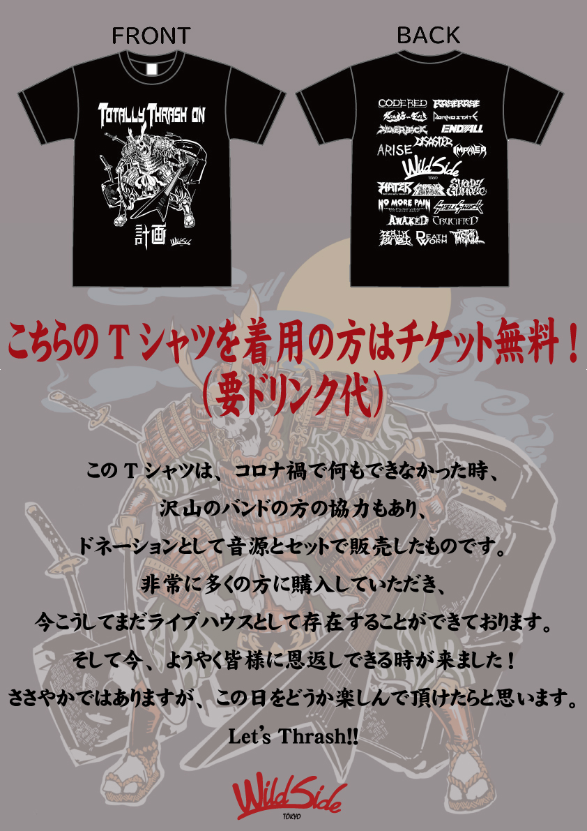 ※TOTALLY THRASH ON 計画Tシャツ着用で、チケット代無料(要DRINK代)!