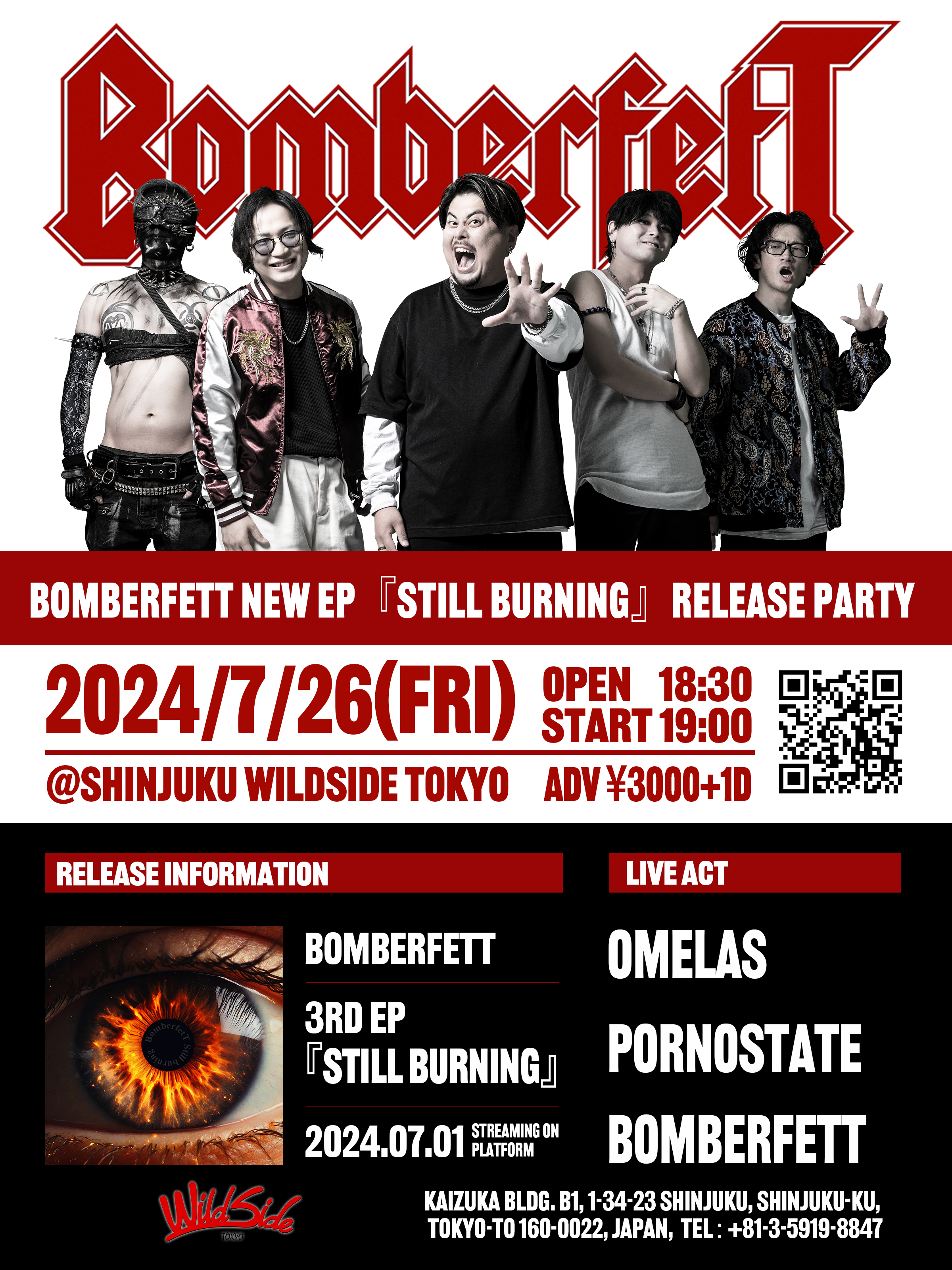 出演者 Omelas PORNOSTATE BomberfetT OPEN 18:30 / START 19:00 ADV ¥3,000 / ¥3,500 (1DRINK別)