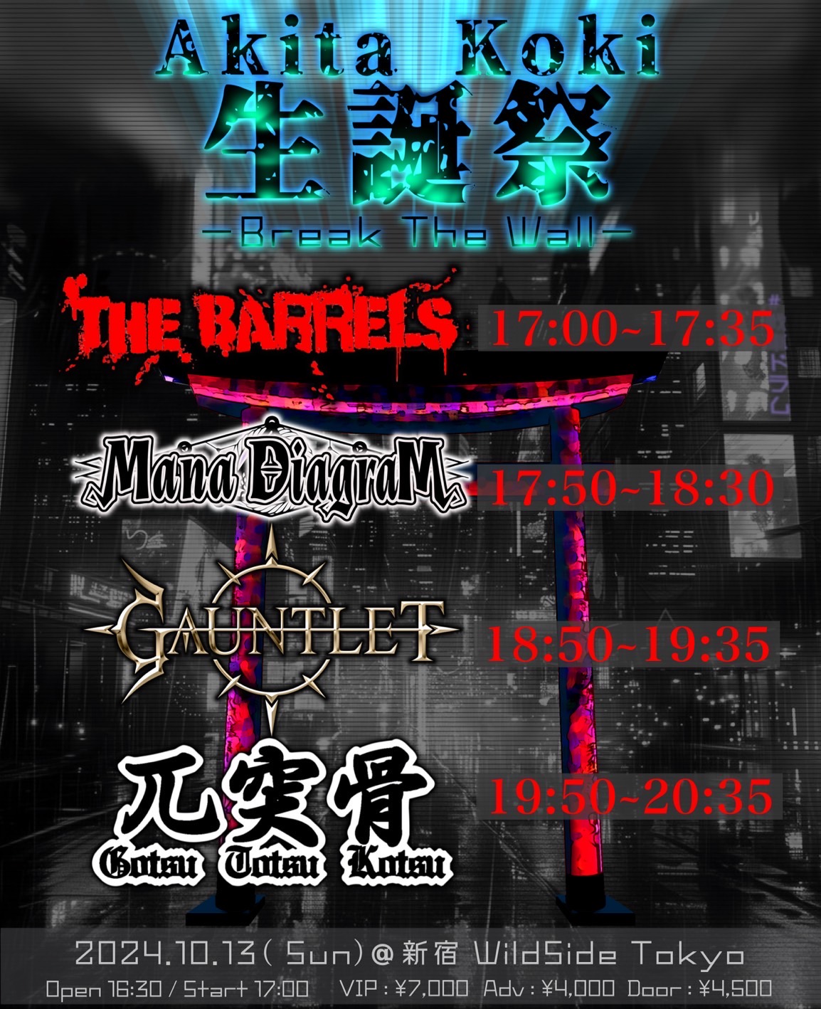 出演者 兀突骨 GAUNTLET Mana Diagram THE BARRELS OPEN 16:30 / START 17:00 VIP ¥7,000 / ADV ¥4,000 / DOOR ¥4,500 (1DRINK別)