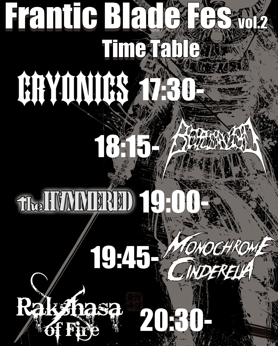出演者 BEREAVED CRYONICS MONOCHROME CINDERELLA The HAMMERED Rakshasa of Fire OPEN 17:00 / START 17:30 ADV ¥3,500 / DOOR ¥4,000 (1DRINK別)