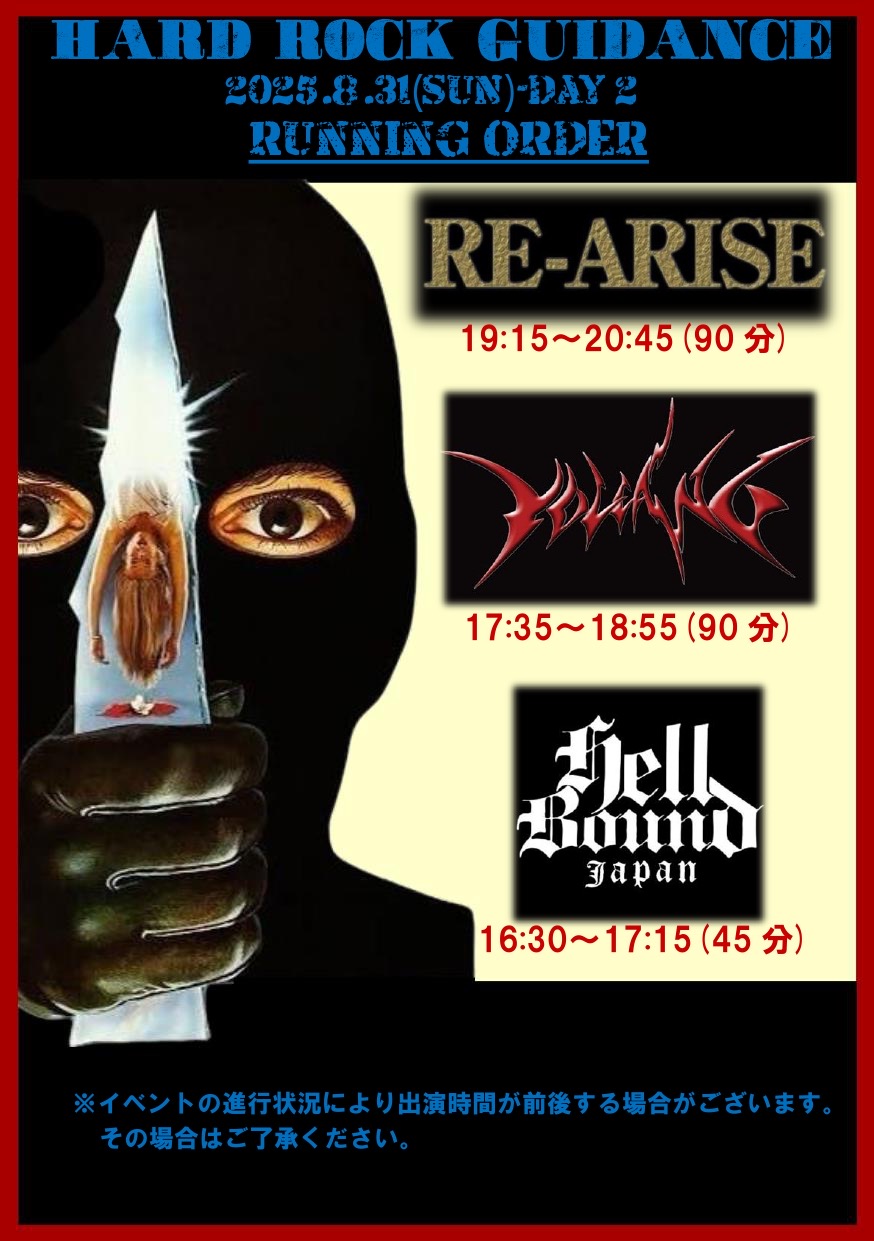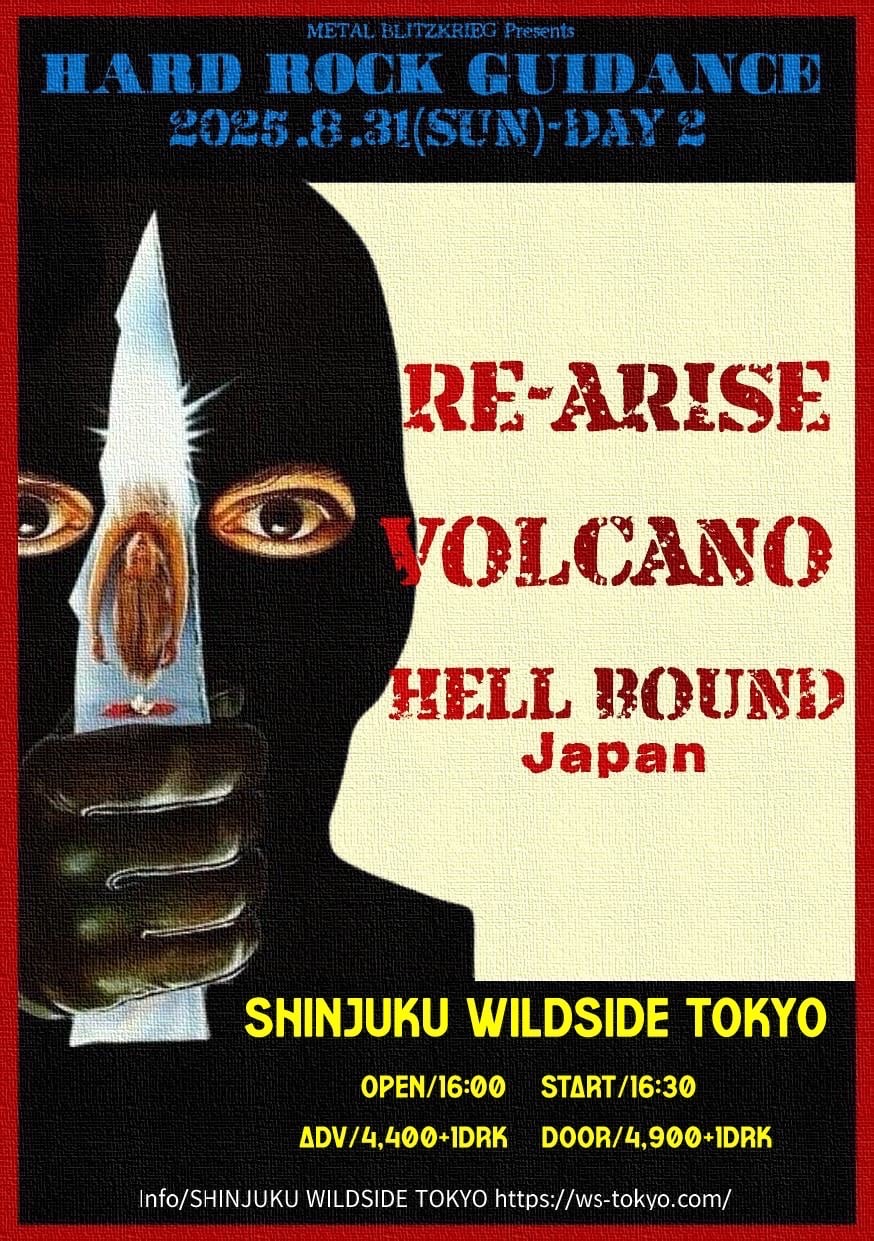 出演者 RE-ARISE VOLCANO HELL BOUND Japan(金沢) OPEN 16:00 / START 16:30 ADV ¥4,400 / DOOR ¥4,900 (1DRINK別)