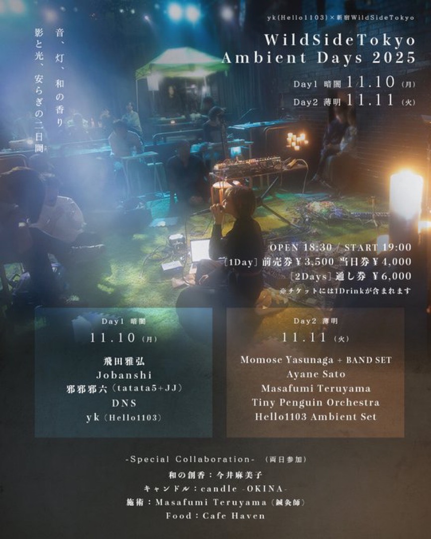 [1Day] 前売券¥3,500 当日券¥4,000 [2Days] 通し券 ¥6,000 (全て1Drink込み)
