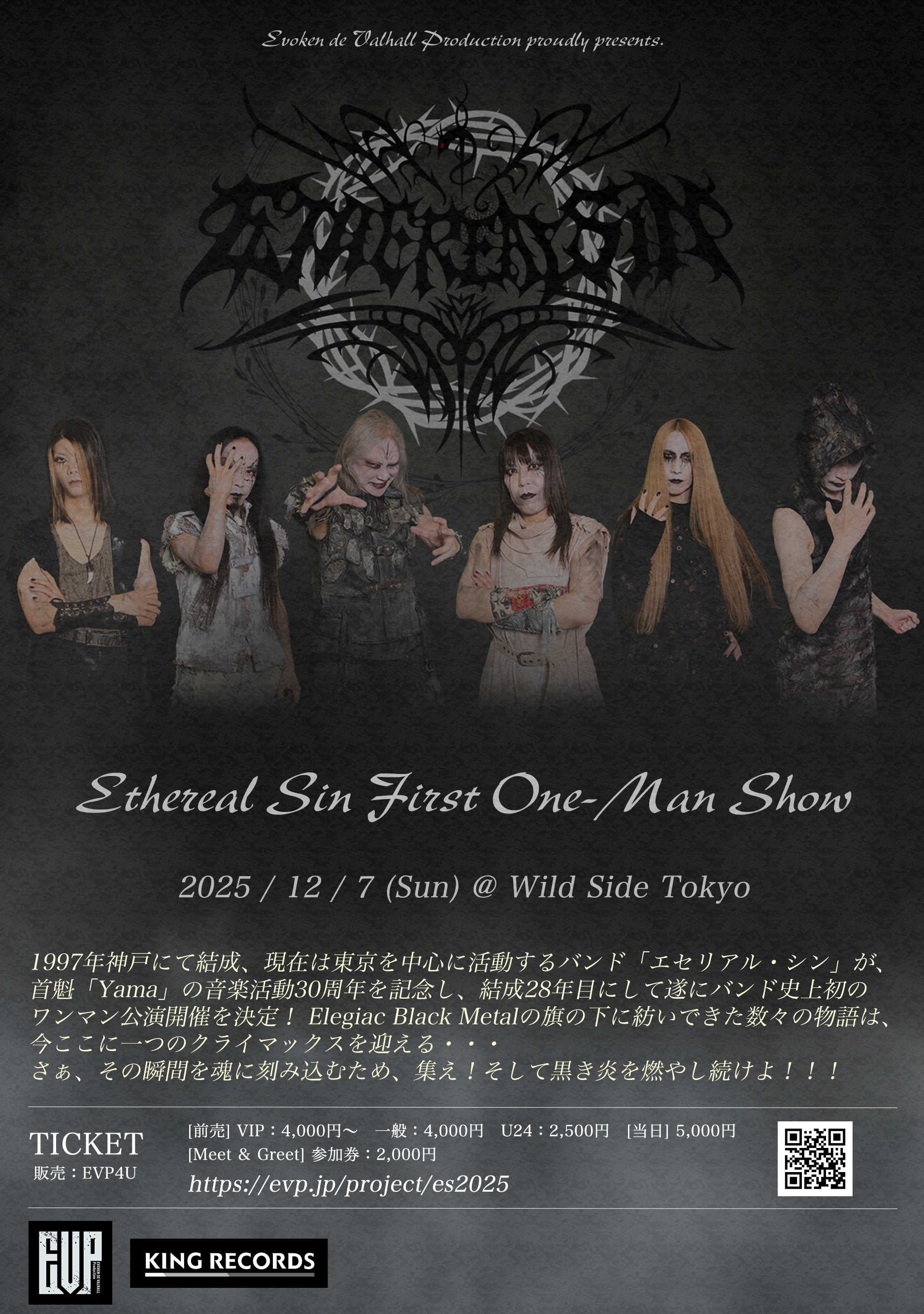 出演者 Ethereal Sin OPEN 17:00 / START 17:30 ADV ¥4,000 / DOOR ¥5,000 (1DRINK別) メタル