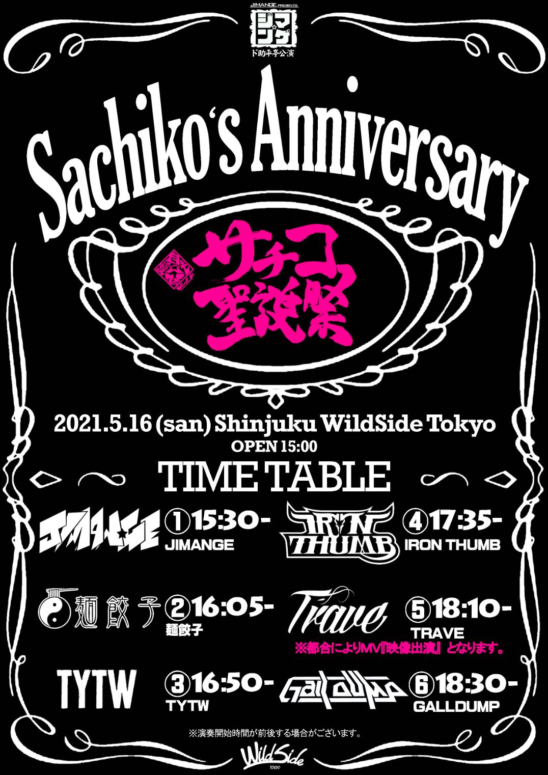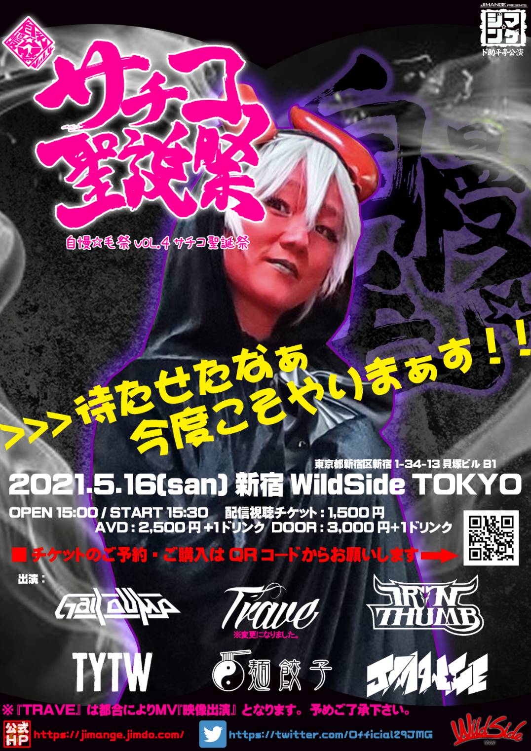 出演者 自慢☆毛 麵餃子 TYTW IRON THUMB TRAVE (映像出演) GALLDUMP OPEN 15:00 / START 15:30 ADV ¥2,500 / DOOR ¥3,000 / 配信¥1,500