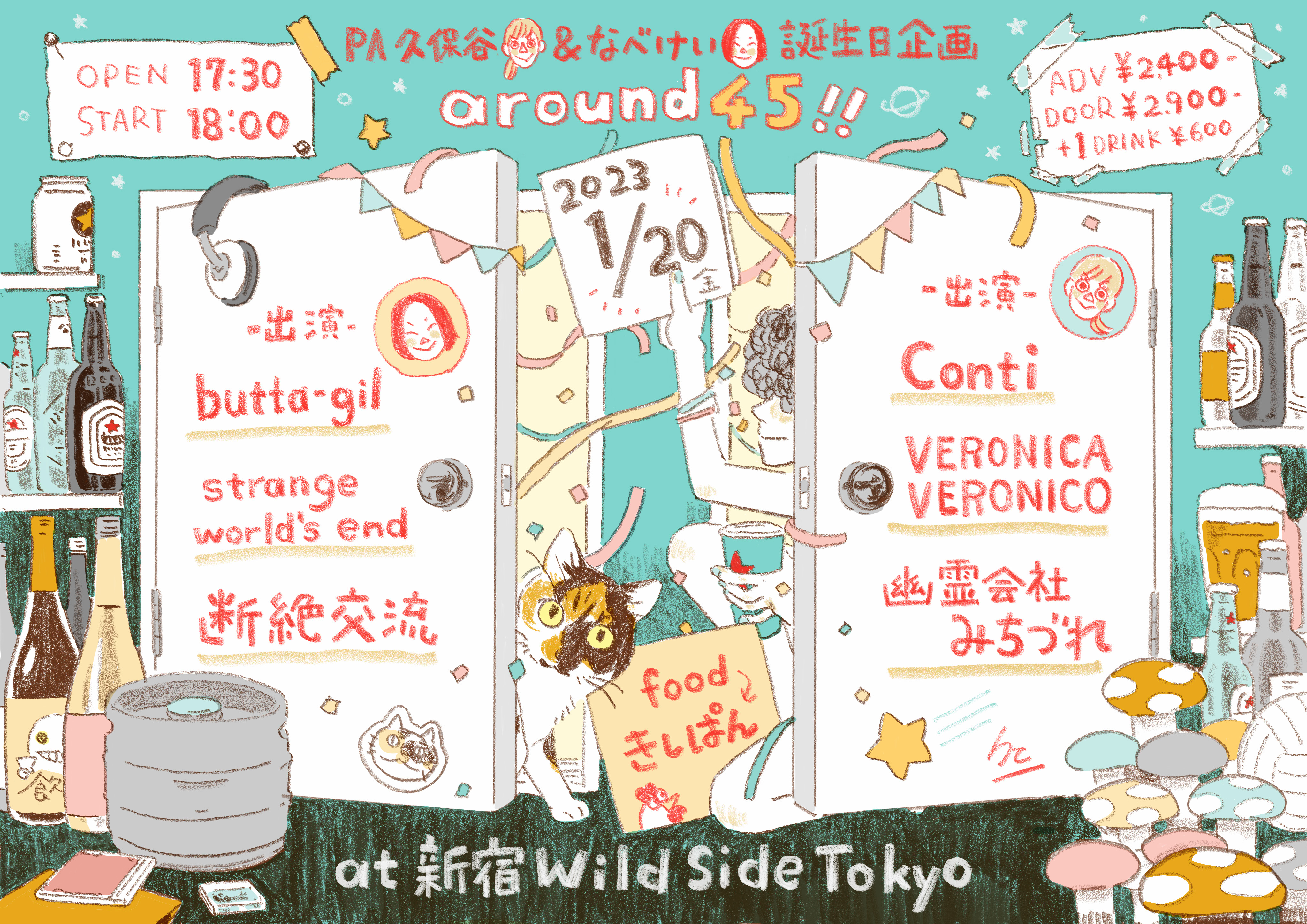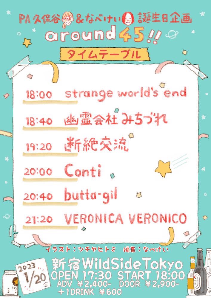 出演者 butta-gil Conti 断絶交流 strange world's end 幽霊会社みちづれ VERONICA VERONICO food きしぱん OPEN 17:30 / START 18:00 ADV¥2400/DOOR¥2900