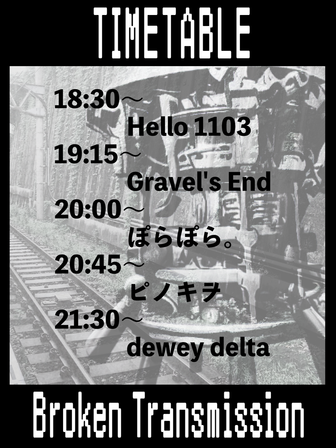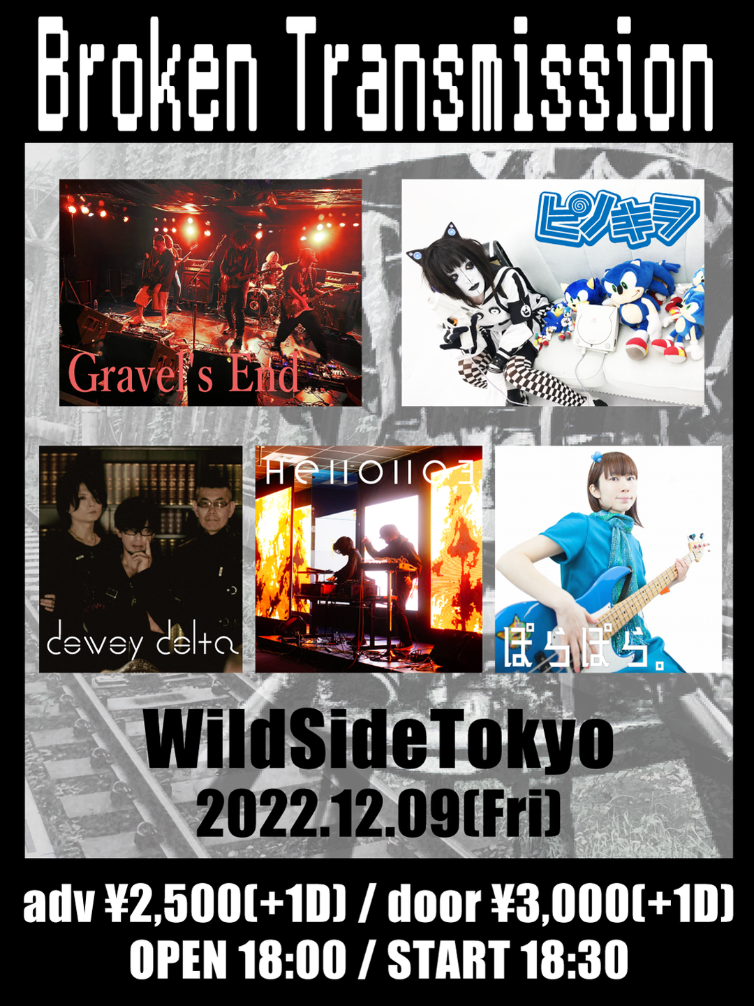 出演者 dewey delta Hello1103 Gravel's End ぽらぽら。 ピノキヲ OPEN 18:00 / START 18:30 ADV¥2500/DOOR¥3000 配信¥2200